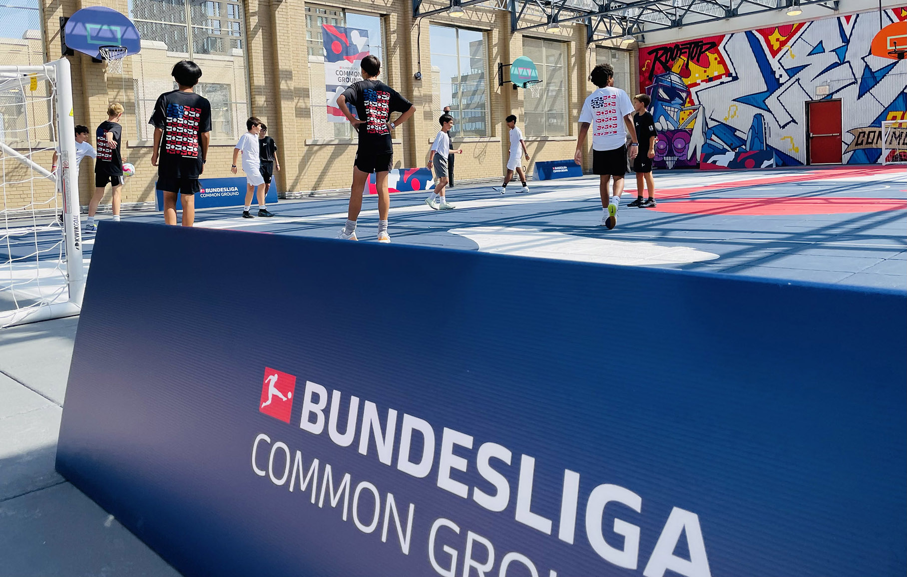 Signage design for Bundesliga's Common Ground event at the New Design High School Rooftop.
